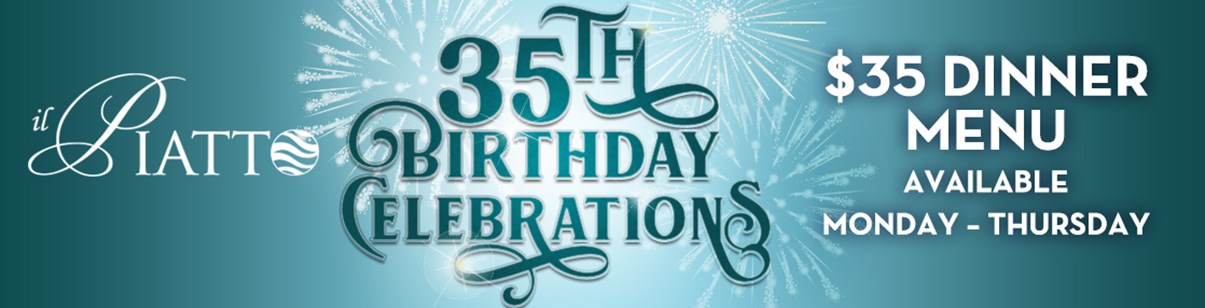 Excite your tastebuds with our $35 dinner menu in il Piatto while celebrate SKYCTIY's 35th birthday!