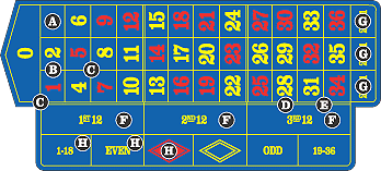 - Dozen: Choose 1st (1-12), 2nd (13-24) or 3rd (25-36) dozen numbers (pays 2 to 1)